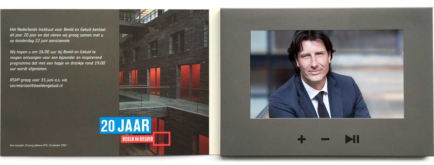 En dat moest gevierd worden! Genodigden voor het feest ontvangen een kaart annex video waarin de directeur